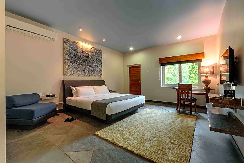 The spacious twin room features air conditioning, a private entrance, a balcony with garden views as well as a private bathroom boasting a walk-in shower. The unit has 2 beds.